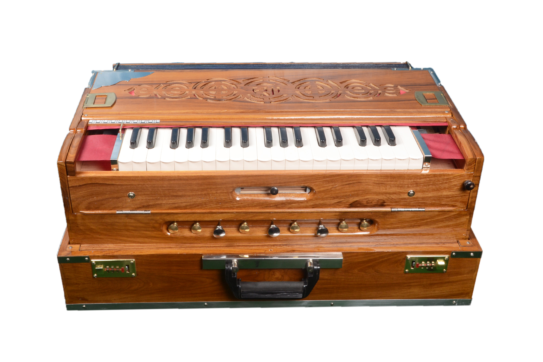 Scale-change HarmoniumA majestic offering by the organization. The scale-change harmoniums are a work-of-art and are an artist’s impression. It is crafted with beautiful motifs and are available of various categories bespoked to meet customer requirements. The harmoniums were a favorite of stalwarts like Sandhya Mukhopadhyay, Ashoketaru Bandhopadhay, Dwijen Mukhopadhyay, Manobendra Mukhopadhyay, Suchitra Mitra to name a few.